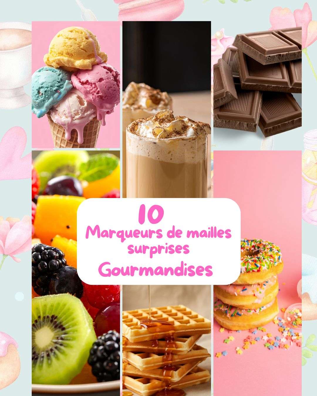 /!\ mélange aléatoire de 10 marqueurs de mailles sur le thème de la gourmandise.