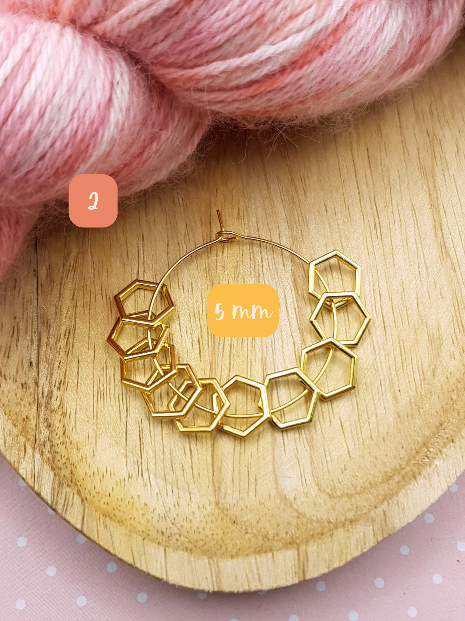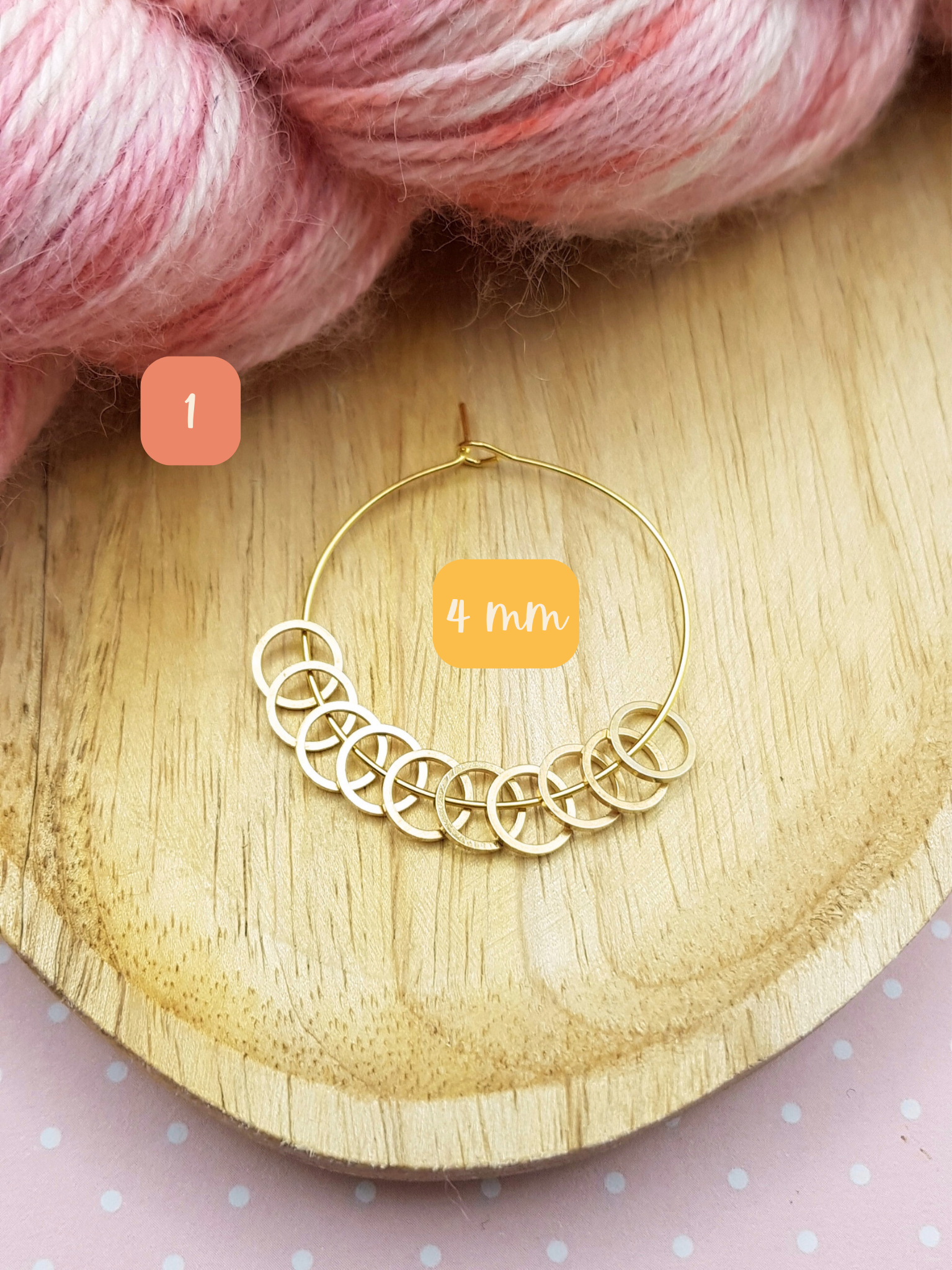 - 2 marqueurs de maille amovibles en émail et en métal doré.