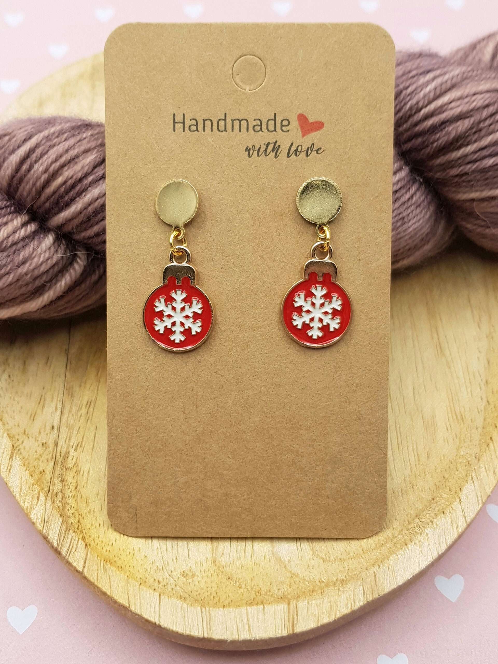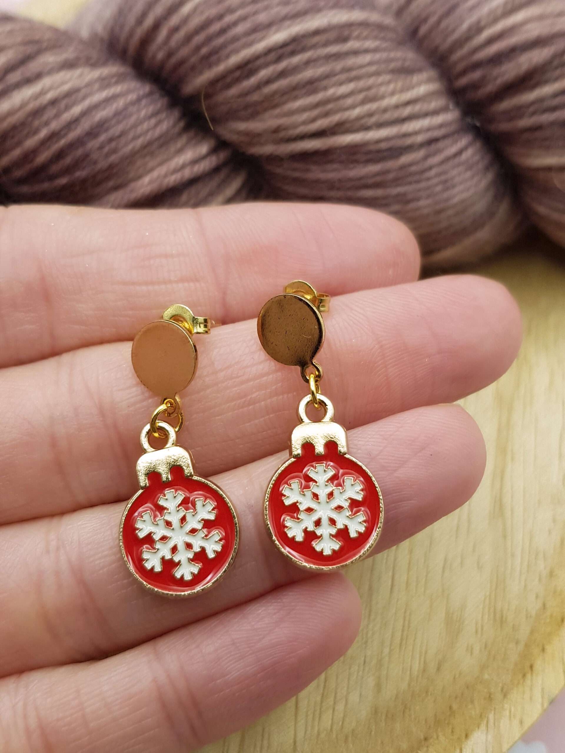Inspirées des marqueurs de mailles iconiques du Repère des Tricopin(e)s, ces boucles d'oreilles boules de noël sont pensées pour vous accompagner au quotidien 🤩.