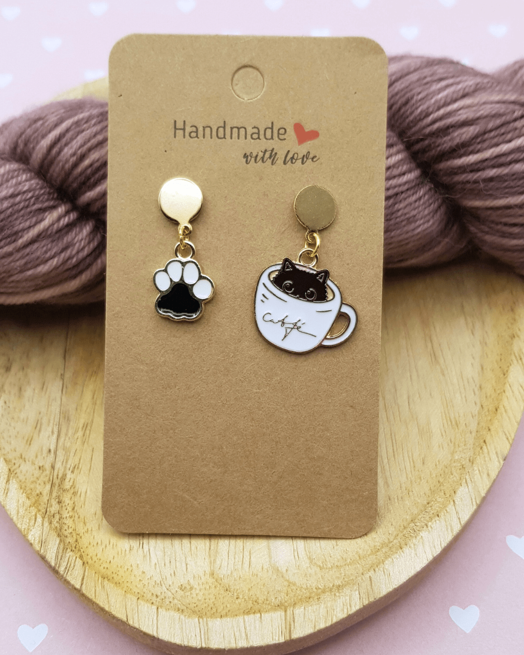 Inspirées des marqueurs de mailles iconiques du Repère des Tricopin(e)s, ces boucles d'oreilles chat tasse café sont pensées pour vous accompagner au quotidien 🤩.