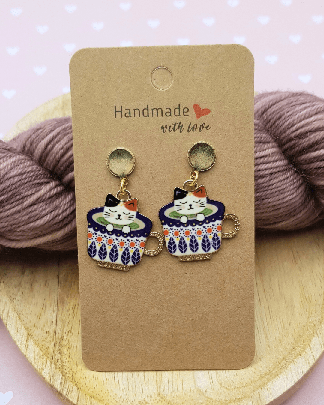 Inspirées des marqueurs de mailles iconiques du Repère des Tricopin(e)s, ces boucles d'oreilles chat tasse thé sont pensées pour vous accompagner au quotidien 🤩.