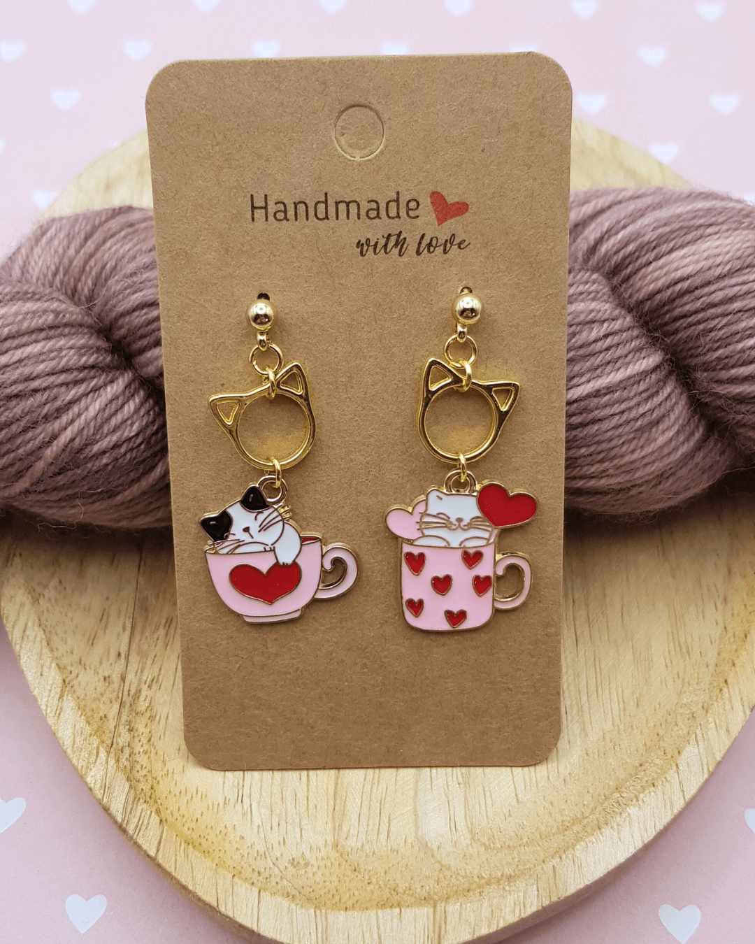 Inspirées des marqueurs de mailles iconiques du Repère des Tricopin(e)s, ces boucles d'oreilles chats tasse coeur sont pensées pour vous accompagner au quotidien 🤩.
