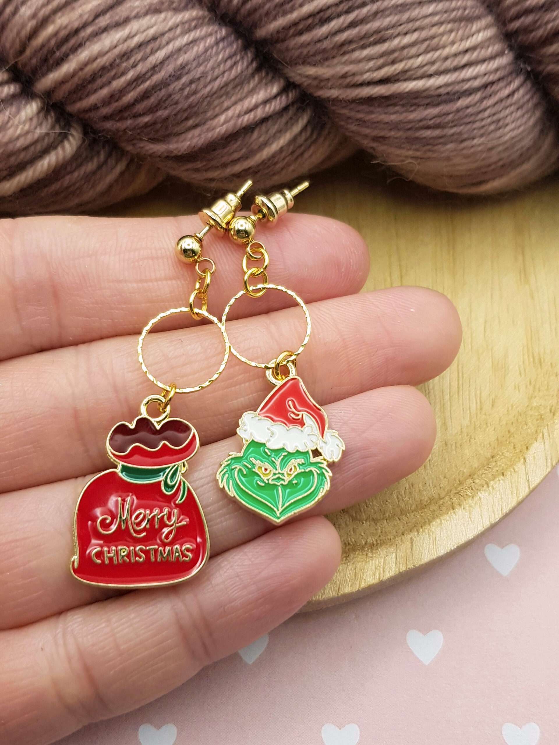 Inspirées des marqueurs de mailles iconiques du Repère des Tricopin(e)s, ces boucles d'oreilles grinch sont pensées pour vous accompagner au quotidien 🤩.