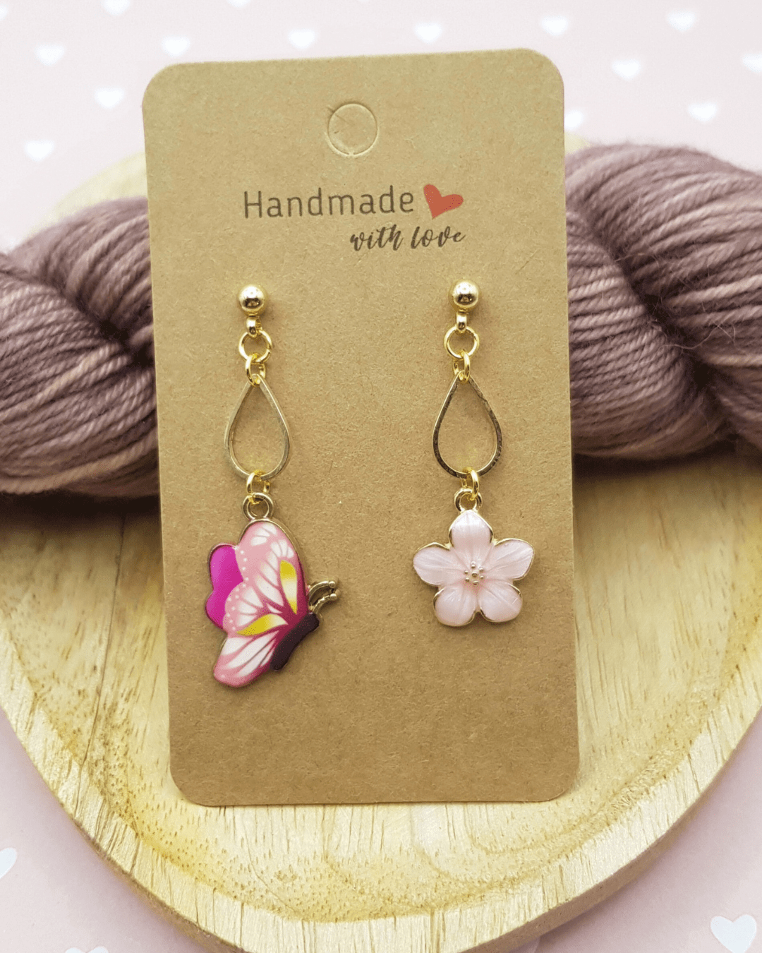 Inspirées des marqueurs de mailles iconiques du Repère des Tricopin(e)s, ces boucles d'oreilles papillon fleur sont pensées pour vous accompagner au quotidien 🤩.