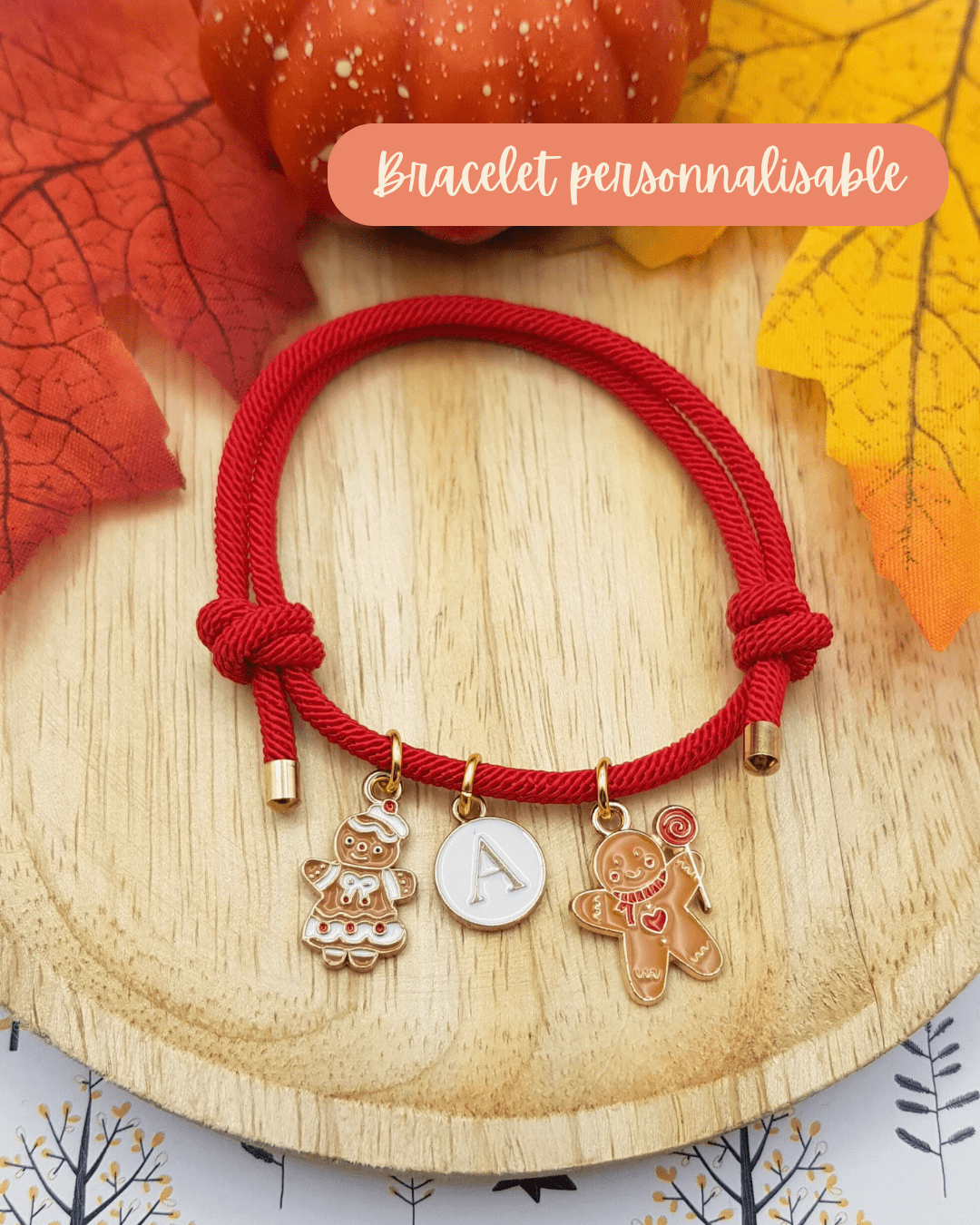 Si vous optez par exemple pour un bracelet de couleur rouge composé de 3 charms comme sur la photo, voici comment transmettre votre choix : bonhomme pain d'épices, lettre « a », madame pain d'épice.