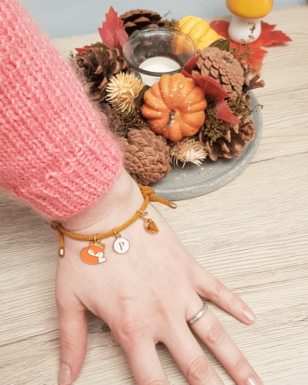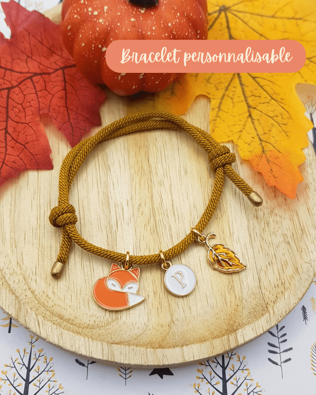 Pour créer le bracelet personnalisable renard qui vous ressemble, commencez par choisir la couleur du cordon parmi les différentes options disponibles. Ensuite, sélectionnez la lettre charm de votre choix pour finaliser ce dernier.