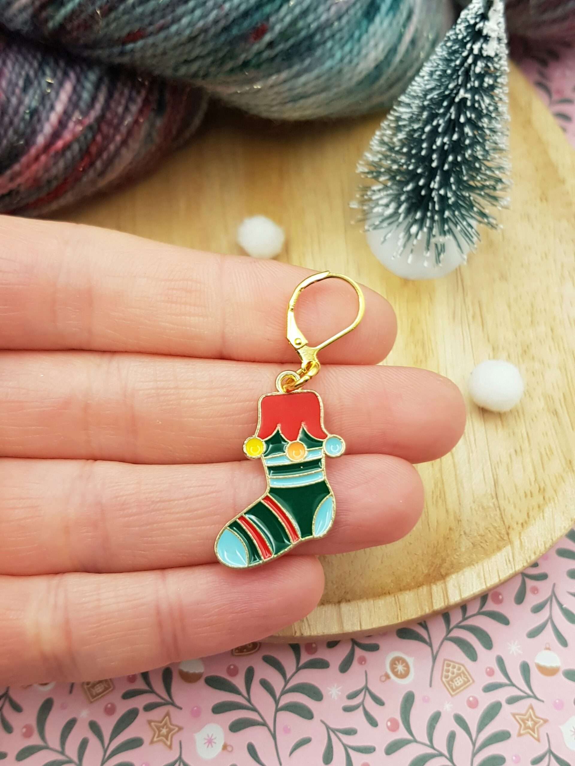 Un joli marqueur de maille chaussette de lutin pour vos encours hivernaux 🎄.
