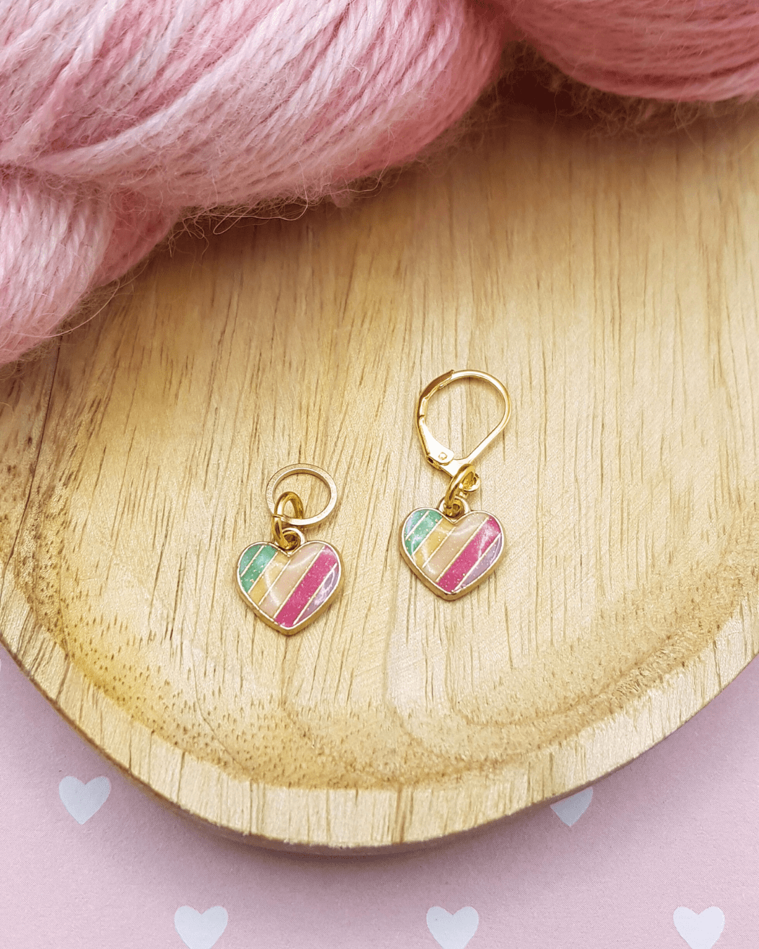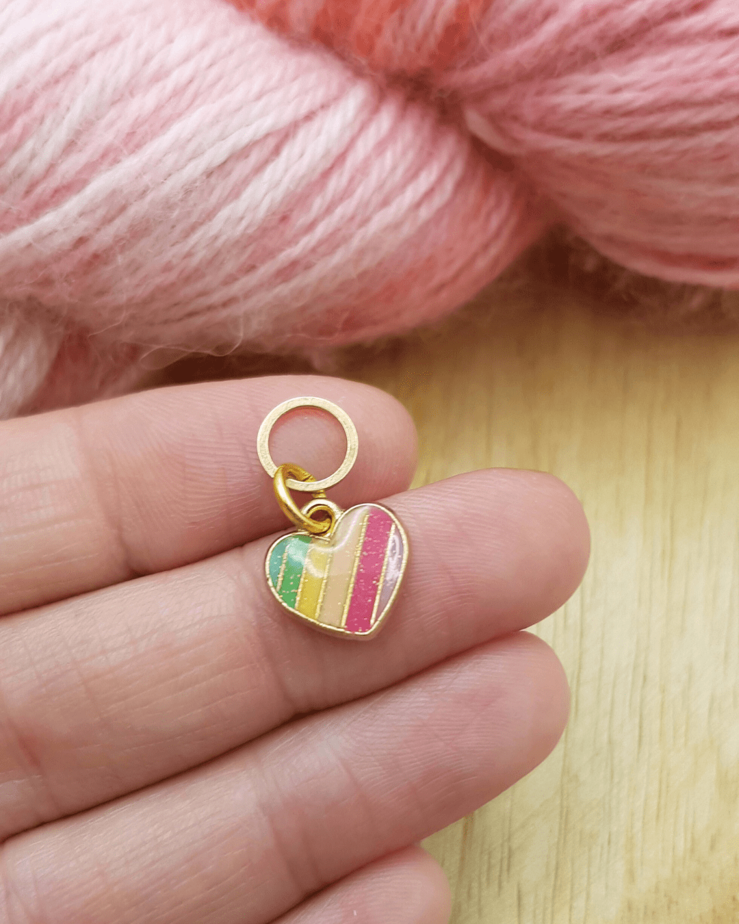 Ce joli marqueur de maille coeur arc en ciel est vendu à l’unité.