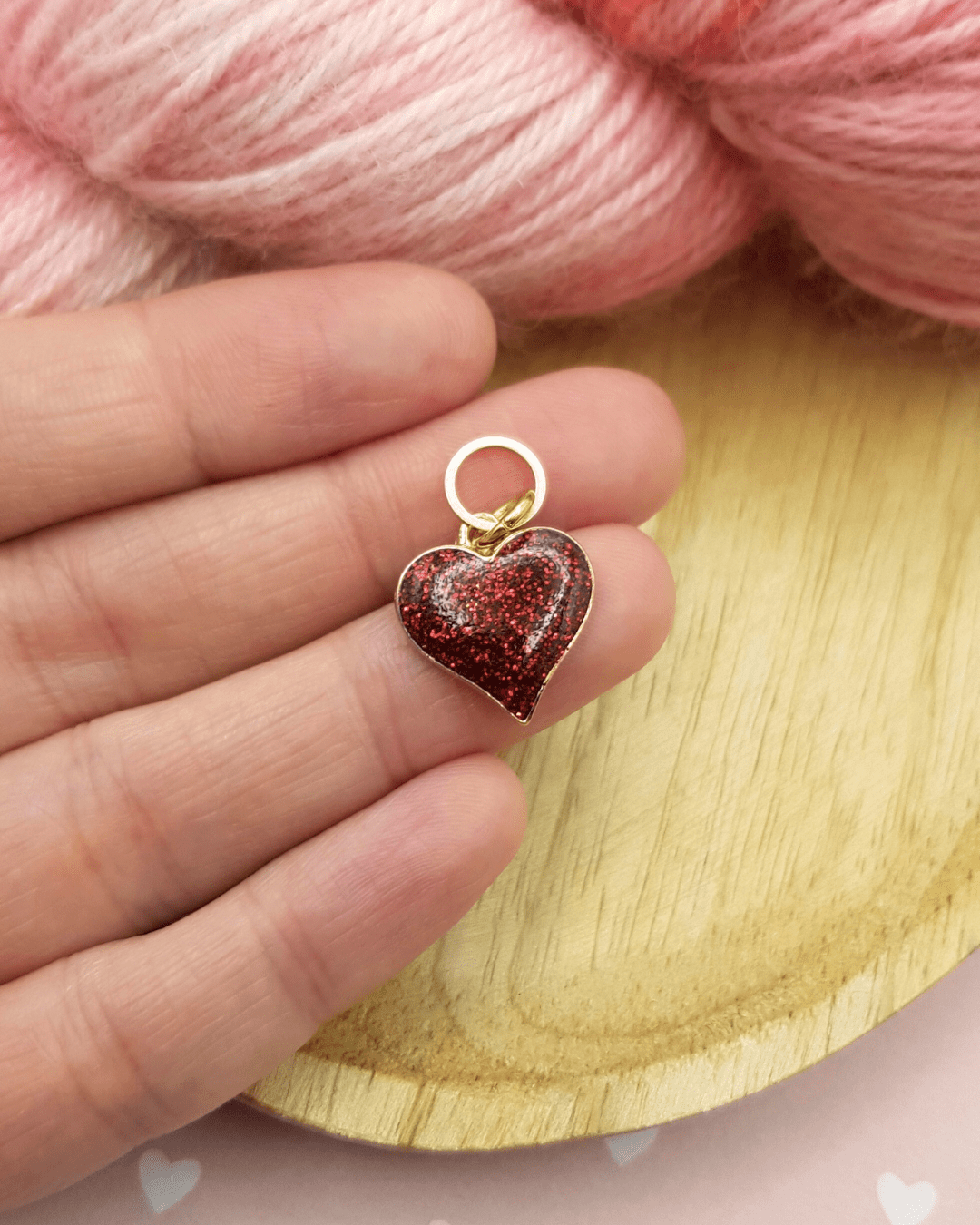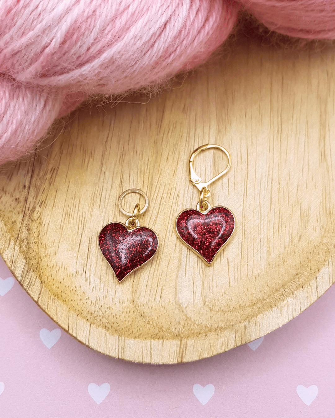 Un joli marqueur de maille coeur rouge à pailettes pour agrémenter tous vos encours.