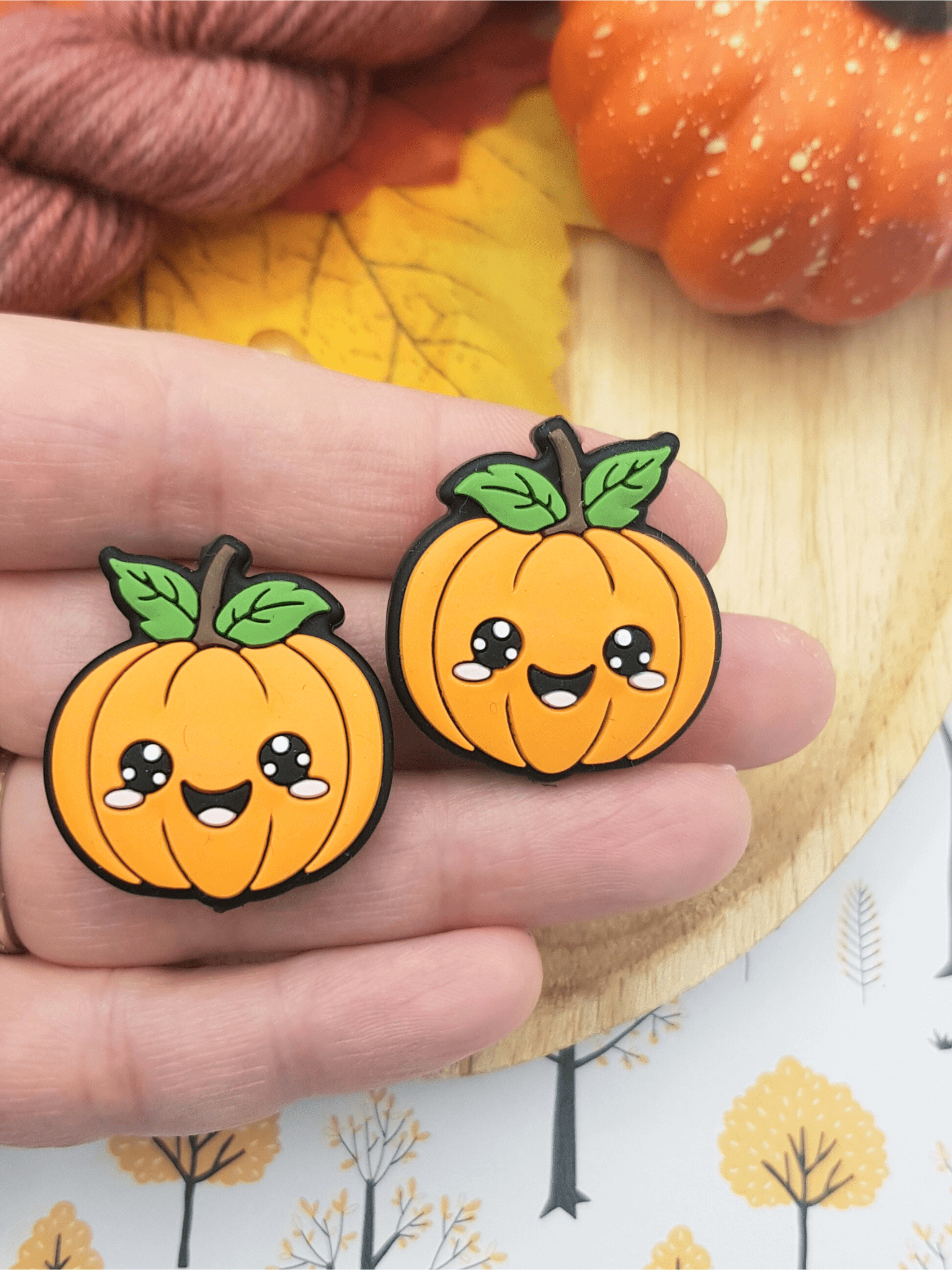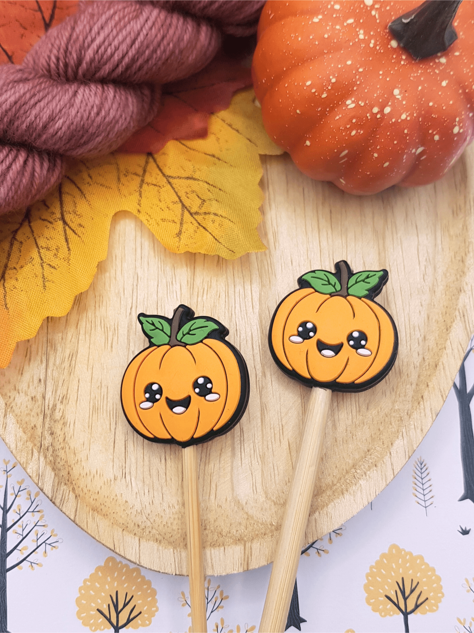 De mignons stoppeurs de maille citrouille kawaii pour vos aiguilles 🍂.